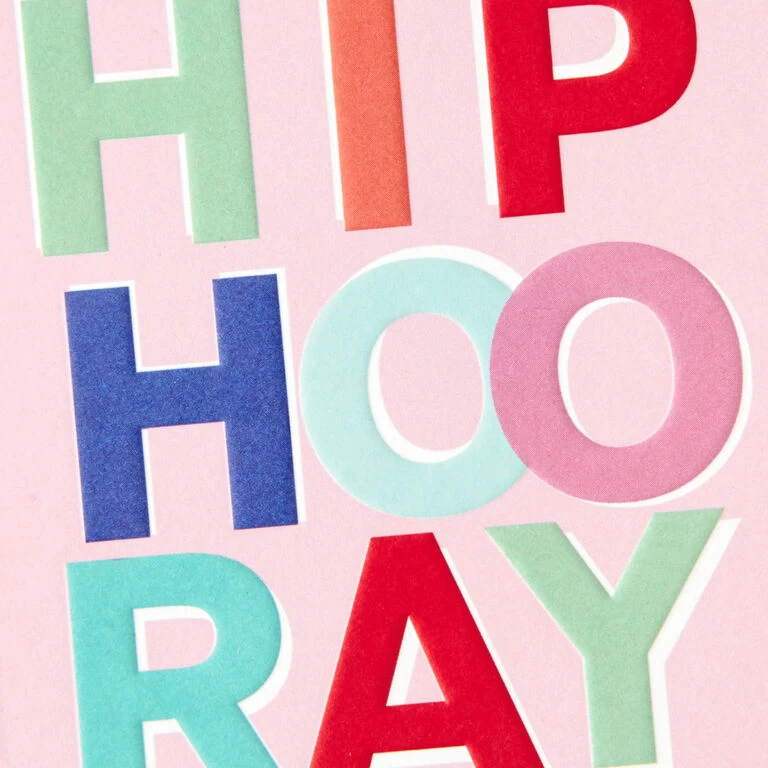 - Floral cover message: (blank); Script lettering cover message: You’re the best. For real; Rainbow stripes cover message: Happy Day, Happy Year, Happy You!; Block lettering cover message: Hip Hip Hooray.