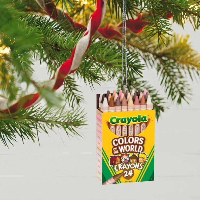 Celebrate diversity and creativity with this colorful Christmas tree ornament. The beautiful design recreates a 24-pack of Crayola Colors of the World crayons, featuring specially formulated hues that represent different skin tones from around the world. Makes a wonderful gift for your favorite young artist or a beloved teacher.