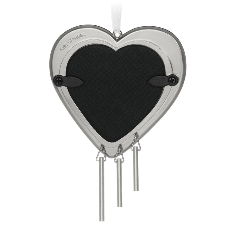 Our furry family members hold a place in our hearts long after they’re gone. Share this lovely metal Christmas tree ornament as a remembrance gift with someone who has lost their beloved pet, or add it to your own decor with a favorite photo to honor a special dog or cat that has crossed the Rainbow Bridge. Heart-shaped picture frame features a paw print design in silver-tone metal with dangling tubes that chime when moved.