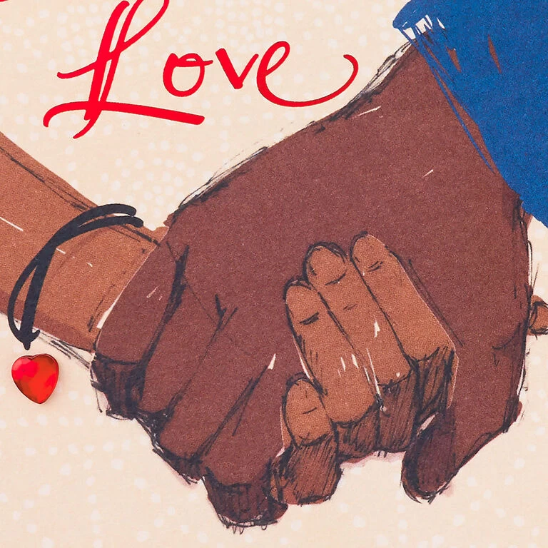 Holding hands design: Black love is a beautiful thing; Wishing you time to celebrate another year of bringing out the best in each other and making marriage look good. Congratulations