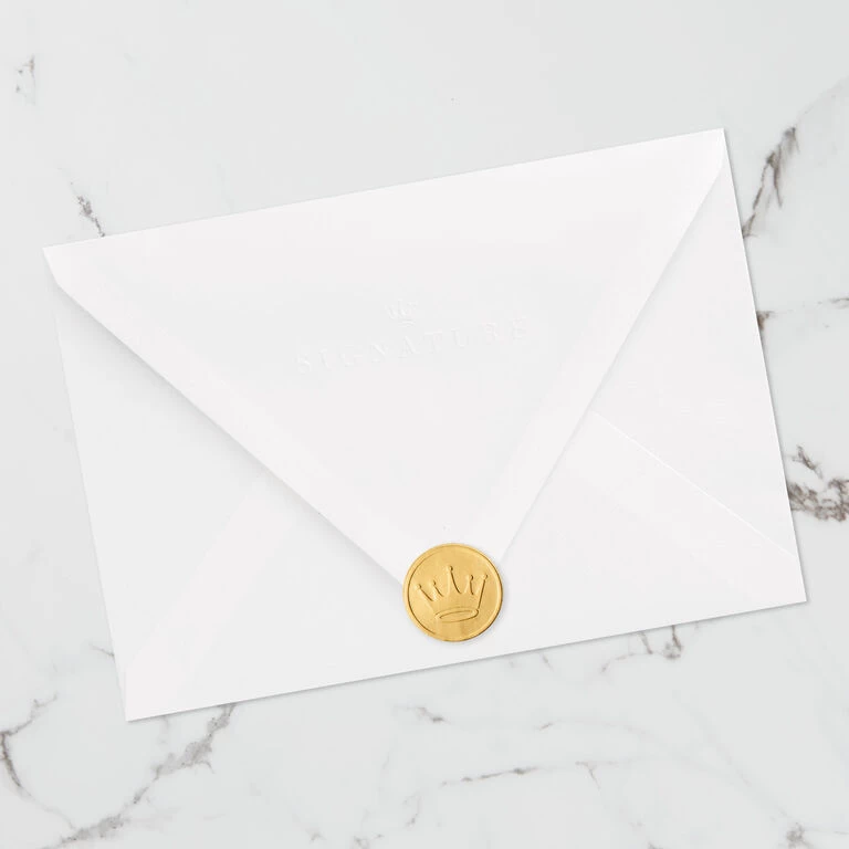 - Includes one card and one lined envelope with a Gold Crown seal. Envelope color may vary.