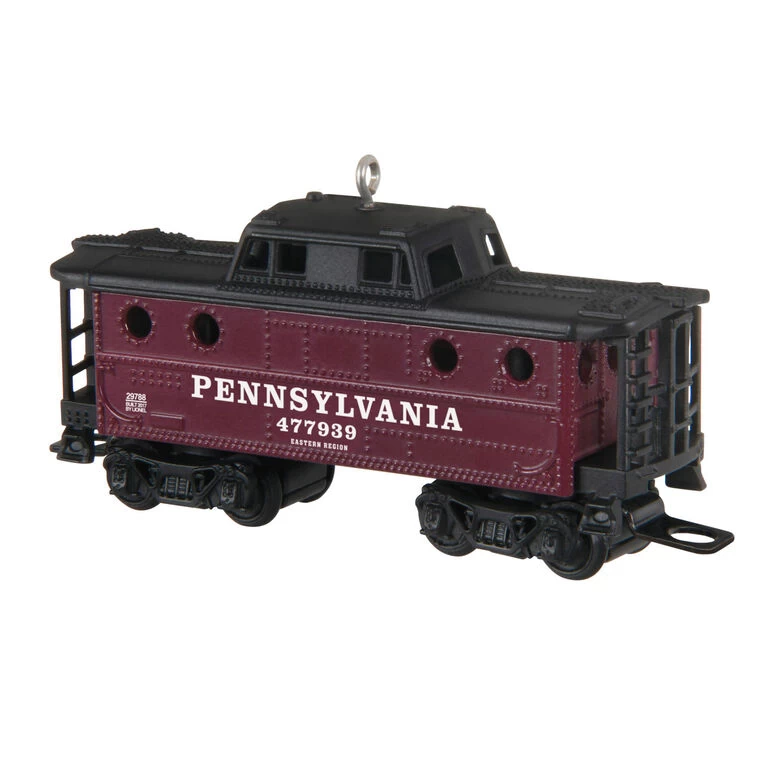 Bringing up the rear of this year’s Lionel Trains Keepsake Ornaments is this crewed railroad car, a fixture on every freight train until the 1980s. Boasting the logo and name of the Pennsylvania Railroad, this die-cast metal caboose Christmas tree ornament features plenty of accurate details and wheels that turn.
