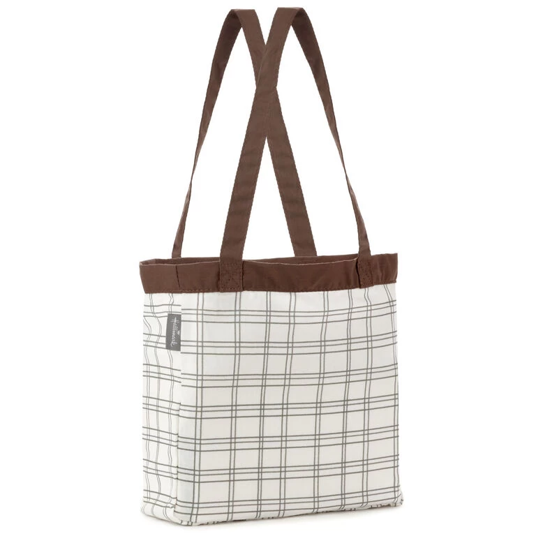 Little ones will enjoy on-the-go fun with this bag and finger puppet set. Cotton bag with handles features a printed plaid design with diamond-patterned pockets that hold three animal finger puppets—a flamingo, kangaroo and tiger—and includes a designed scene for puppet play. This adorable set coordinates with the My Zoo board book (sold separately) that can easily be tucked inside the cute bag.