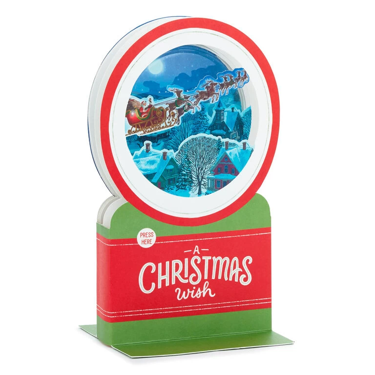 Hallmark Santa’s Sleigh Snow Globe Musical 3D Pop-Up Christmas Card With Motion