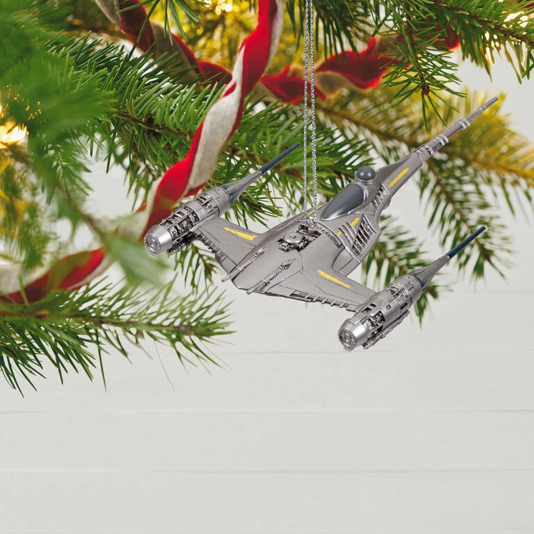 Long after the fall of the Republic, a Naboo N-1 Starfighter remains as a relic from a simpler time. This Christmas tree ornament features the iconic ship from Star Wars: The Mandalorian, which Peli Motto helped Din Djarin modify into a truly one-of-a-kind, off-the-grid combination of speed, precision and style.
