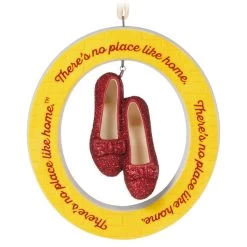 Anyone who has dreamed of skipping along the Yellow Brick Road will adore this elegant porcelain Christmas tree ornament. A sparkling pair of Ruby Slippers hangs in the center of a yellow circle with an embossed brick pattern and the classic phrase “There’s no place like home.” Fans of the movie “The Wizard of Oz” will love displaying this premium decoration all through the holiday season and for years to come.